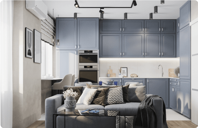 После утверждения концепции мы подготавливаем визуализации. Также наши дизайнеры предоставляют услуги по 3D визуализации проектов Создание объемной визуализации позволяет увидеть будущий интерьер в мельчайших деталях.
